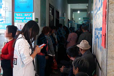 在走廊里等候问诊的患者及家属
