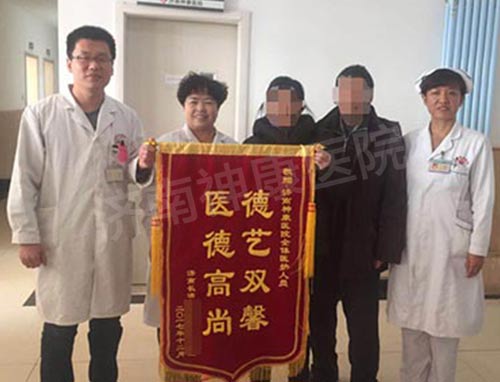 今天,到了宋大姐回院复查的日子,一大早她就和丈夫来到医院,通过复查,她各项指标恢复良好。想起以前患病时日子的艰难,看看如今康复后平稳的生活,她从心里感激济南神康医院的医护人员,于是,宋大姐和丈夫决定,一定要给医院的大夫、护士送面锦旗,表达自己对神康医院的真诚感谢!