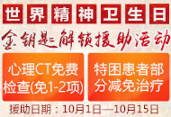 2017年10月1日-10月15日,济南神康医院将紧紧围绕“世界精神卫生日”宣传主题,开展各项精神疾病援助计划,从实际关爱百姓群众的精神健康,帮助众多精神疾病患者摆脱疾病困扰。...[详细]