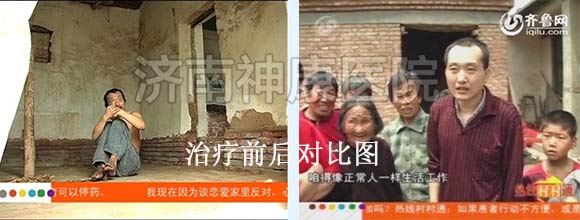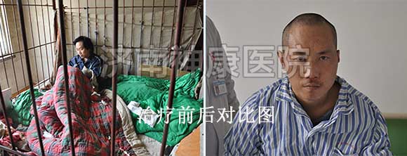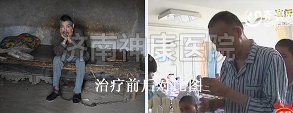 泰安马庄镇的村民巩大嫂患者有多年的精神分裂症,只要一发病脱了衣服就往外跑,看见围墙就往上爬,遇见邻居就破口大骂,丈夫为了防止妻子再次出去闯祸、扰乱邻居,无奈之下,只好用一根铁链锁住了她的双脚。2012年2月,巩大嫂的事件被媒体报道后,引起了神康医院的关注,经过一个月的综合系统治疗之后,巩大嫂面色红润了不少,生活已经可以自理了,自语自笑、妄想的症状也全部消失了,已达到临床有效治疗出院的标准。详情点击:女子精神分裂 丈夫铁链锁脚