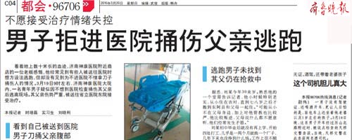 图:齐鲁晚报报道《男子拒进医院捅伤父亲逃跑》